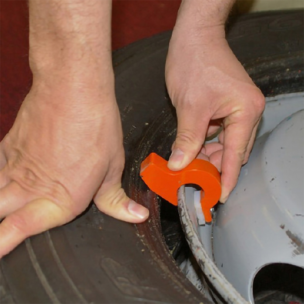 • Removes the need to “Walk” on the tire while mounting the tire back onto the rim